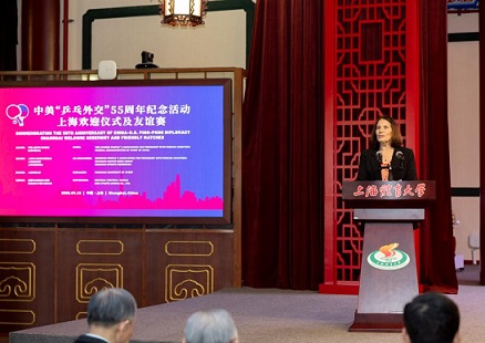 4月13日至14日,中美“乒乓外交”55周年纪念活动在上海举行。应中国人民对外友好协会和上海市人民对外友好协会邀请,朱迪·霍夫罗斯特、康妮·史维利斯和奥尔加·索尔特斯等中美“乒乓外交”亲历者,和来自美国各地的青少年运动员、体育界人士、青年学生以及友好人士代表参加活动。